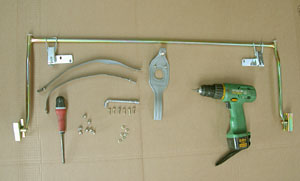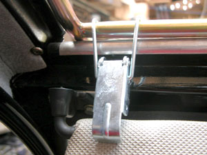 Monter un portique de fermeture intérieure de capote est une chose facile à faire. Prévoyez une clé de 8 à pipe, un tournevis cruciforme et une perceuse avec un foret de 2.5. la poignée de fermeture de capote, une paire de sangles, entre 4 et 6 vis de 5X 16 selon que la voiture est équipée ou non d'un pare soleil passager (en option sur certaines versions)