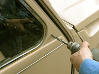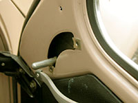 | 3/ Déposez l'enjoliveur plastique d'ouverture de porte (ou le bandeau plastique sur les 2CV Club). | |
