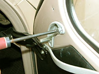 4/ Munissez-vous de la petite plaquette de renfort, l'écrou doit être côté intérieur de la voiture.