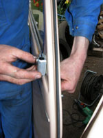 | 5/ Engagez doucement la plaquette dans la porte. Attention à ne pas la laisser tomber, sinon il faudra démonter la portière pour la récupérer ! |